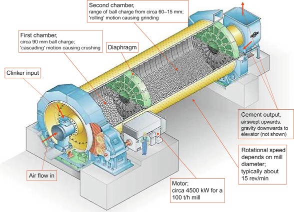 The grinding media are the balls, which may be made of steel (chrome steel), stainless steel, ceramic, or rubber. The inner surface of the cylindrical shell is usually lined with an abrasion-resistant material such as manganese steel or rubber lining.